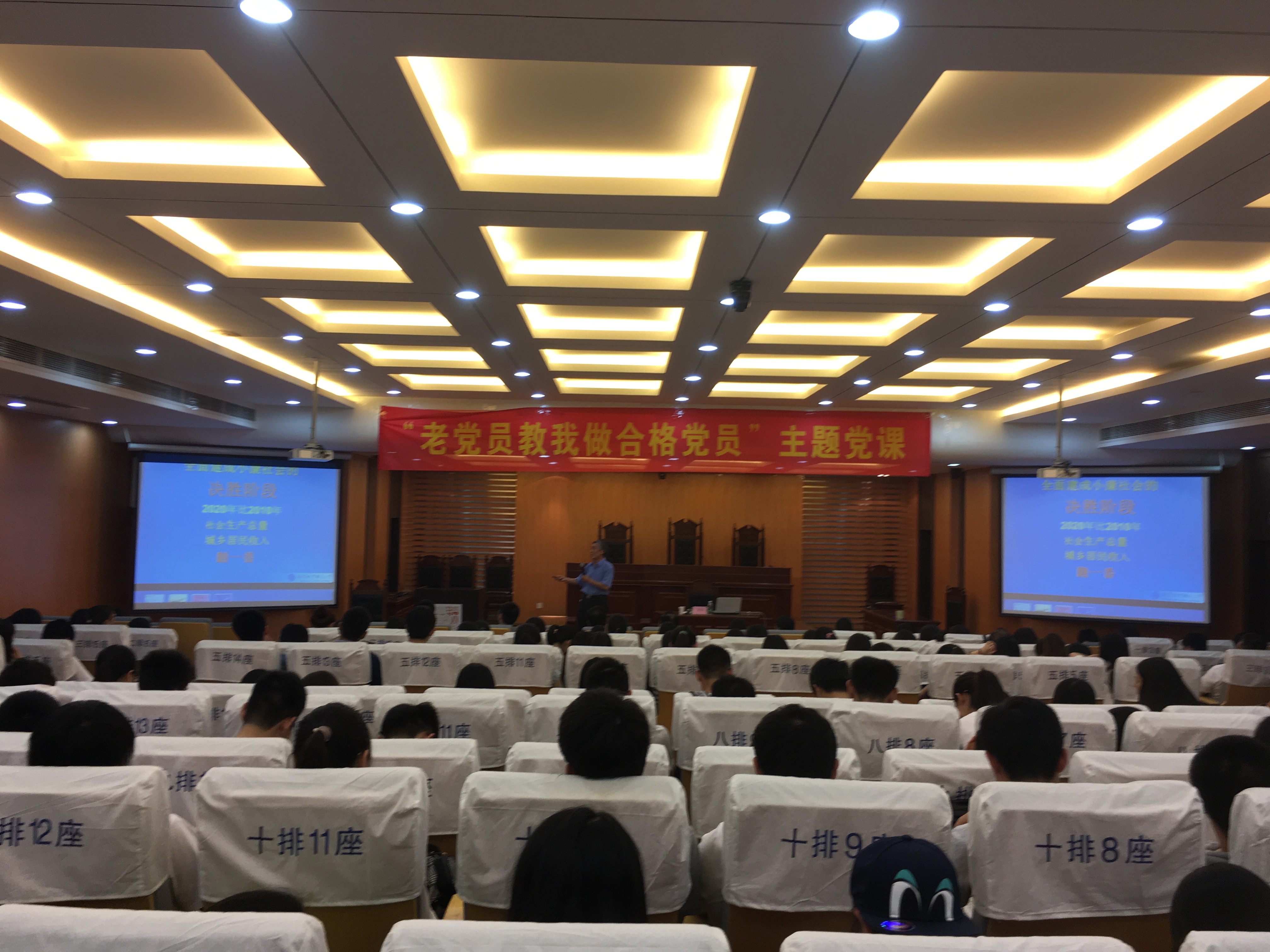 5月31日下午,人文与社会科学学院“两学一做”学习教育之“老党员教我做合格党员”主题党课在学院模拟法庭举办,校关工委常务副主任丁荣茂为人文学院、葡京8883官网入口的党员同志、全体研究生党支部书记及人文学院15级本科生开讲。人文学院党委书记张启钱主持了本次党课。