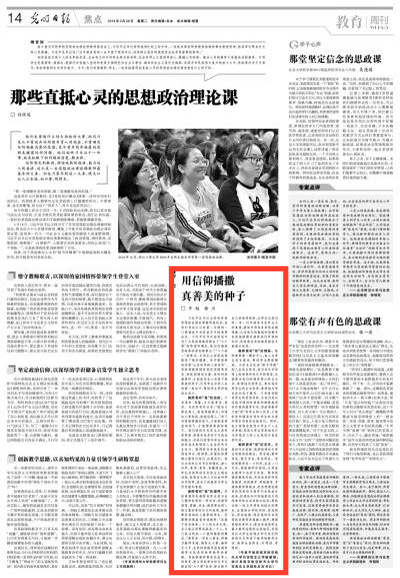 《光明日报》3月26日刊登葡京官网教授平旭、学院党总支书记徐川的文章《用信仰播撒真善美的种子》。