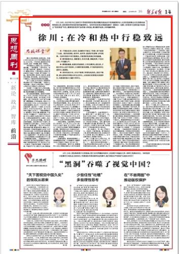 4月14日,《新华日报》“思想周刊”版发表葡京官网党总支书记徐川的理论文章《在冷和热中行稳致远》。