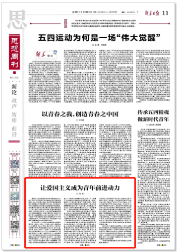 在当代中国,中国的命运与中国共产党的命运、社会主义制度的命运是紧密联系在一起的。只有坚持爱国和爱党、爱社会主义相统一,爱国主义才是鲜活的、真实的,这是当代中国爱国主义精神的本质体现。国家不是一个抽象的概念,它是由具体的社会形态、社会制度构成的实体。一个国家的强盛,离不开先进政党的领导和先进社会制度的保证。五四运动,爆发于民族危难之际,以彻底反帝反封建的革命性、追求救国强国真理的进步性、各族各界群众积极参与的广泛性,推动了中国社会进步,促进了马克思主义在中国的传播,促进了马克思主义同中国工人运动的结合,为中国共产党成立做了思想上干部上的准备,为新的革命力量、革命文化、革命斗争登上历史舞台创造了条件。经过五四运动洗礼,越来越多中国先进分子集合在马克思主义旗帜下,1921年中国共产党宣告正式成立,中国历史掀开了崭新一页。中国共产党由马克思主义而生,马克思主义是中国共产党人初心的理论之源;中国共产党为人民而建,人民利益是中国共产党的立场之根;中国共产党为共产主义而奋斗,共产主义是中国共产党人的远大目标。90多年来,中国共产党始终不忘初心,把实现中华民族伟大复兴作为自己的历史使命,带领全国各族人民进行革命、建设和改革实践,把中国特色社会主义推向了新时代,谱写了社会主义事业的辉煌篇章,奏响了民族精神的时代强音。历史已经证明,只有社会主义才能救中国,只有中国特色社会主义才能发展中国。广大新时代中国青年必须深刻认识到,当前中国的命运与中国共产党的命运、社会主义制度的命运是紧密联系在一起的。坚定不移的理想信念,是我们战胜逆境、推进事业的精神力量。