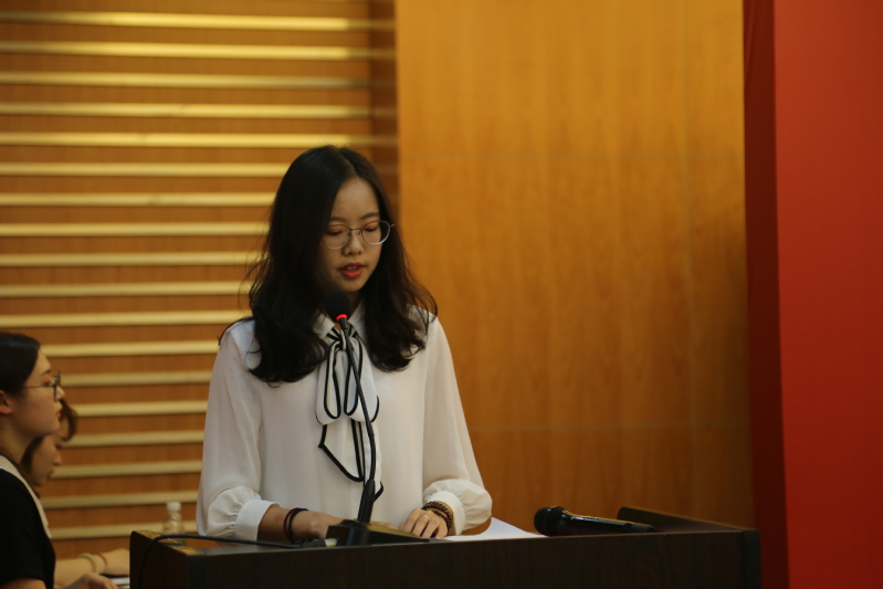 2019级硕士研究生张雯昕同学作为新生代表发言。张雯昕同学表示,作为葡京8883官网入口的学生,要坚定信仰,把握当下,刻苦学习,善于创新,要将所学所思所想与实践相结合,多问勤学善思,争取在马院发挥出自己的最大力量。