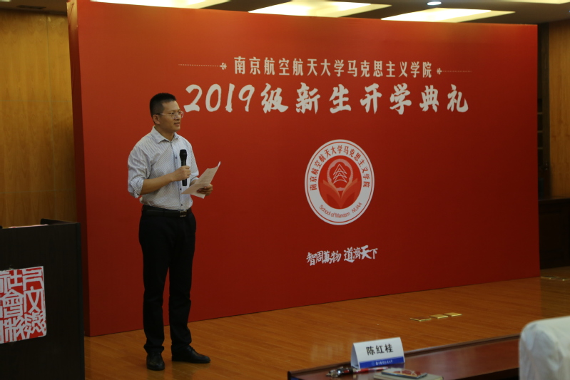 院长王智对2019级全体新生表示了热烈的欢迎和衷心的祝福。王智从“学”字入手,欢迎大家来到南航,走进葡京8883官网入口,选择马克思主义这门学科。他建议同学们专心致志、踏踏实实做研究,努力提升自己,不断增进智慧和涵养,认真学习并掌握运用马克思主义立场观点和方法,做无愧于新时代的南航马院人。