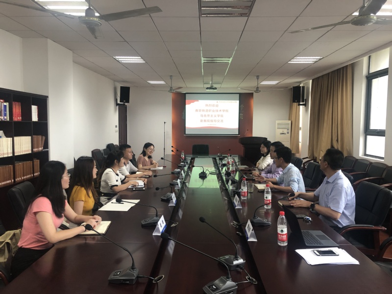 会上,院党总支书记徐川向南京铁道职业技术学院葡京8883官网入口同仁的到来表示热烈欢迎,院长王智介绍了葡京官网学科建设、师资队伍及思政课教学等情况等方面的工作情况。杨晓慧也向与会人员介绍了南铁院葡京8883官网入口的建设情况。