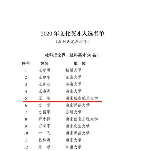 近日,江苏省委宣传部公布了“紫金文化人才培养工程”文化英才和文化优青入选名单,葡京官网王智教授入选2020年文化英才(全省社科理论界共50名)。