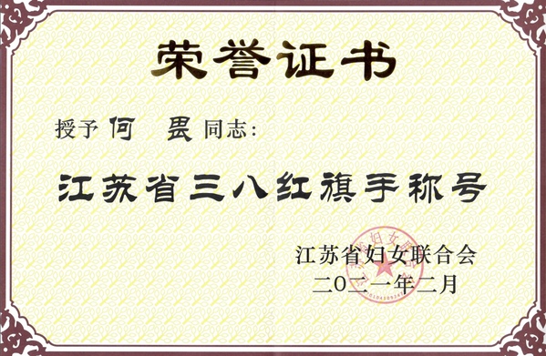 日前,江苏省妇联对2020年度江苏省三八红旗手标兵、三八红旗手、三八红旗集体进行了表彰,葡京官网副院长何畏教授荣获江苏省“三八红旗手”称号。