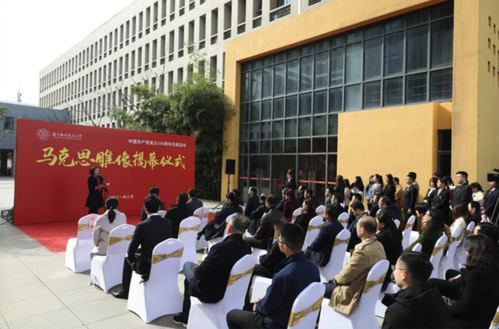 郑永安、杭育新、陶勇、李遥、张捷、尹悟铭、徐川、王智共同为马克思雕像揭幕。