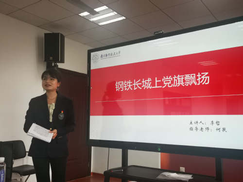 李哲以《钢铁长城上党旗飘扬》为题,在党史学习的基础上,基于“人民军队从哪里来”“人民军队做了什么”和“人民军队何处去”三个问题进行了一系列阐述,结合南航人航空报国情怀强调了党史学习的重要性。宋青励以《从“钢”与“气”谈起——百年大党与中国巨变》为题,从毛泽东同志提出的“钢”与“气”出发,讲到习近平总书记在抗击新冠肺炎疫情中再次强调“钢”与“气”,提供党史学习的新视角。陈琳以《“证”名:中国共产党命名的曲折历程》为题,讲述了中国共产党命名所经历的曲折过程,曲折背后,是中国共产党早期开创者们对于建党一系列问题的思考与探索,从“证”名角度丰富了党史学习内容。