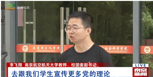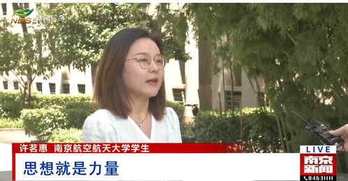 6月6日,南京广播电视台的《南京新闻》“理论宣讲大篷车开进田间地头 宣讲党的创新理论”报道中,采访了葡京官网教师李飞翔和研究生许茗惠同学关于理论专题片《思想的力量》的观看学习体会。