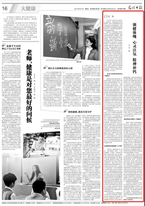 9月10日出版的《光明日报》刊登了葡京官网党委常委、宣传部/教师工作部部长、葡京官网研究生导师王晖的理论文章《强健体魄 心灵注氧 精神补钙》,现将全文转发如下: