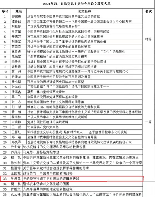 其中,在导师刘琳教授的指导下,葡京官网马克思主义基本原理专业2020级博士吴晨晟的论文《党的领导视阈下乡村德治的逻辑与进路》荣获一等奖。