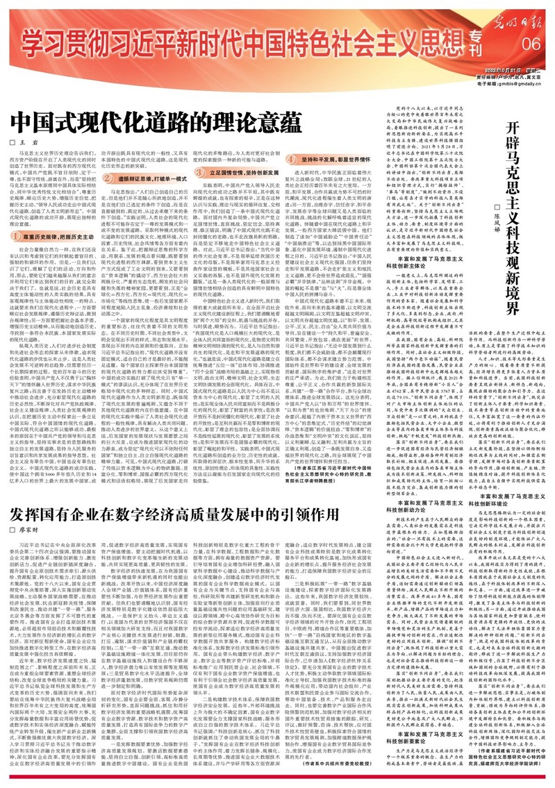 5月31日,《光明日报》第06版“学习贯彻习近平新时代中国特色社会主义思想”专刊刊发了葡京官网王岩教授的理论文章《中国式现代化道路的理论意蕴》,现将全文转发如下: