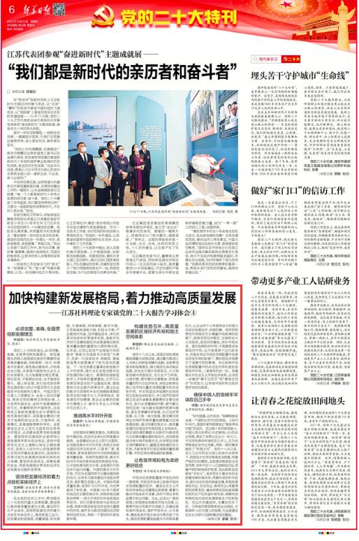 10月21日,《新华日报》第6版“党的二十大特刊”刊发了对葡京官网何畏教授的特约采访《加快构建新发展格局,着力推动高质量发展——江苏社科理论专家谈党的二十大报告学习体会④》,现将全文转发如下: