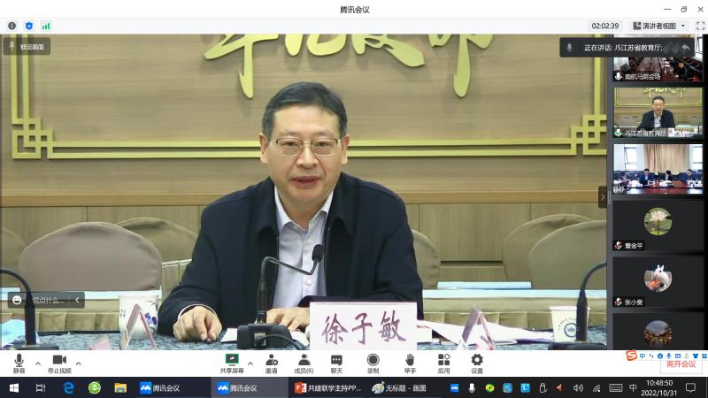 为深入学习贯彻党的二十大精神,10月31日,葡京官网思想道德与法治教研室党支部与省教育厅社政处党支部,以视频连线的方式开展联学共建活动。省委教育工委副书记徐子敏出席联学共建活动。省教育厅机关党委副书记刘海宁、社政处处长赵玉蓉,院党委书记徐川、院长王智及双方党员参加活动。赵玉蓉主持会议。