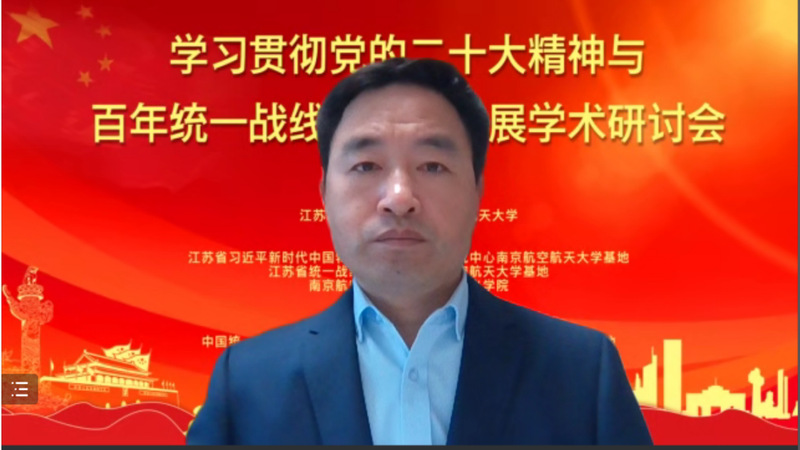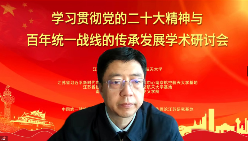 研讨会主旨报告环节由葡京8883官网入口院长、江苏省统一战线理论研究南航基地执行主任兼首席专家王智教授主持。中国人民大学葡京8883官网入口教授、中国统一战线理论研究会政党理论北京研究基地研究员何虎生,武汉大学葡京8883官网入口教授、中国统一战线理论研究会党外知识分子统战工作理论研究湖北基地学术委员会主任委员丁俊萍,浙江省委统战部二级巡视员、中国统一战线理论研究会非公经济人士统战工作理论浙江研究基地副主任杨卫敏,华东师范大学葡京8883官网入口教授丁晓强,澳门城市大学副校长、教授叶桂平,山东大学葡京8883官网入口院长、教授张士海,广东省社会主义学院教学部教授、中国统一战线理论研究会港澳研究基地专家林伟,南京大学中国南海研究协同创新中心主任、教授朱锋,中国统一战线理论研究会新的社会阶层人士统战工作理论研究江苏基地秘书长、江苏省社科院社会学研究所所长、研究员张卫,葡京8883官网入口教授、江苏省统一战线理论研究南航基地研究员靳晓霞分别做主题为《准确把握好四对关系,促进中华儿女大团结》《新时代统一战线话语的建构》《中国式现代化与民营经济统战守正创新》《社会革命视角下的新时代统一战线》《加强港澳统一战线建设刍议》《新时代牢牢掌握意识形态工作领导权的主要着力点》《党的二十大报告有关“港澳统一战线”的创新表述》《动荡变革期呼唤海外统战新历程》《发挥新的社会阶层人士作用 扎实推进全体人民共同富裕》《中国共产党百年统一战线的重大成就和历史经验》的报告。