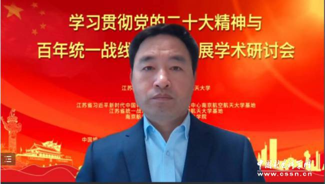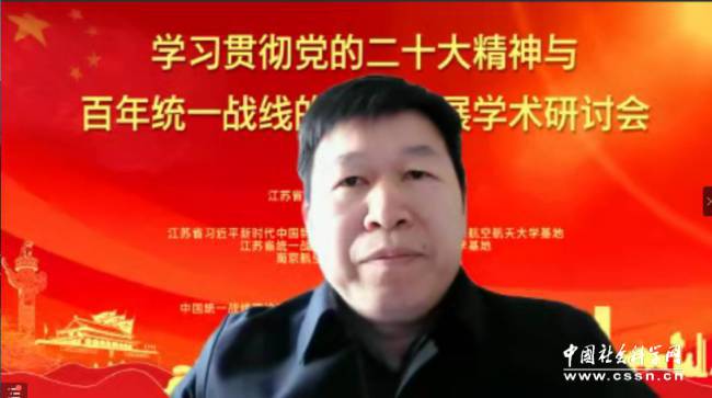 江苏省委统战部副部长徐东海在致辞中表示,本次研讨会是贯彻落实党的二十大精神和深化统一战线理论研究的一项具体行动。他提出三点认识,一是深入学习贯彻习近平总书记关于做好新时代党的统一战线工作的重要思想和党的二十大精神,提高政治站位、强化学思践悟;二是深刻把握百年统一战线特别是新时代统战工作的历史性成就,坚定历史自信、把握历史主动;三是深刻认识统战理论的发展规律,把握大好机遇、推进理论创新。