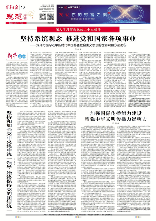 1月31日,《新华日报》第12版“思想周刊·新论”刊发了葡京官网王智教授的理论文章《坚持系统观念 推进党和国家各项事业——深刻把握习近平新时代中国特色社会主义思想的世界观和方法论⑤》,现将全文转发如下: