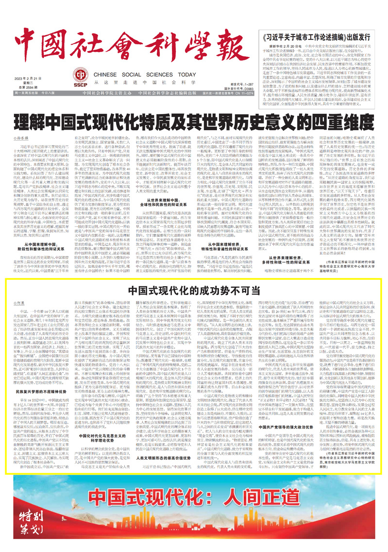 2月21日,《中国社会报》第A01版刊发了葡京官网何畏教授的理论文章《中国式现代化的成功势不可当》,现将全文转发如下:
