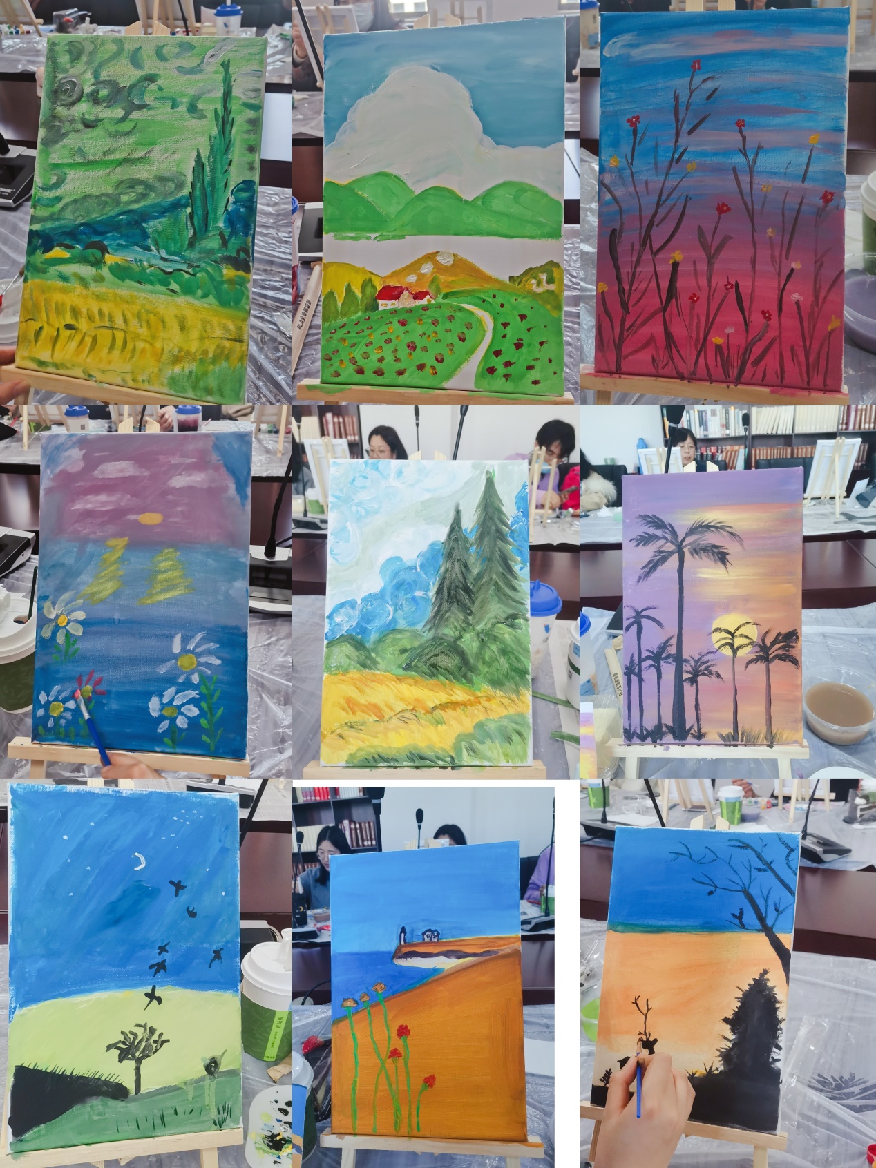 几笔勾勒似云锦,点墨绘出心中情。绘画是一项令人内心平和愉悦,获得成就感的艺术,现场的活动意趣盎然,令老师们热情高涨,大作频出,意犹未尽。