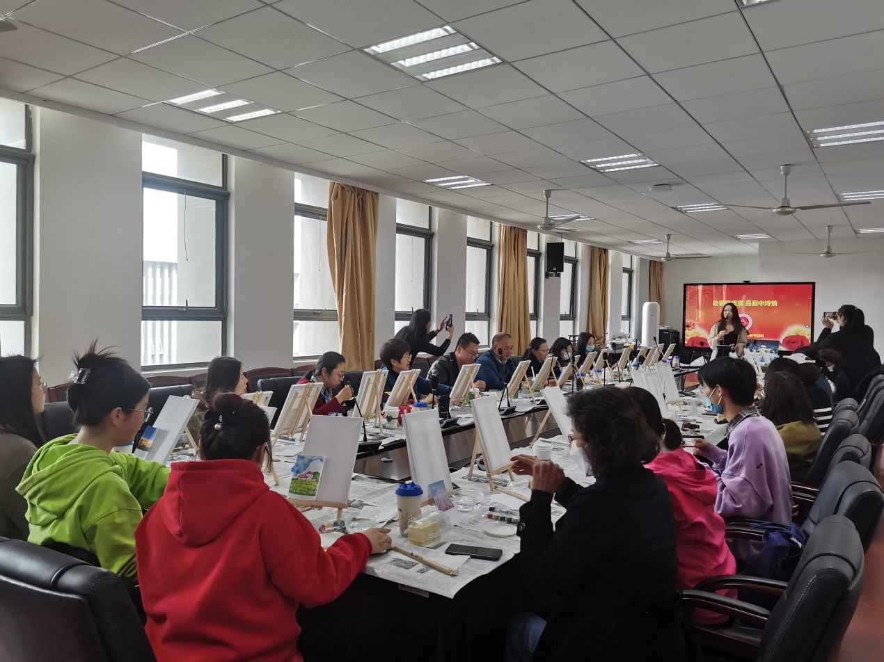 为庆祝即将到来的三八妇女节,丰富教师文化生活,提高审美修养和艺术底蕴,增强凝聚力,展现女教师健康向上、活力充沛的精神面貌,葡京8883官网入口于3月7日上午组织全体女教师开展了以“赴春日盛宴,品画中诗情”为主题的妇女节活动。