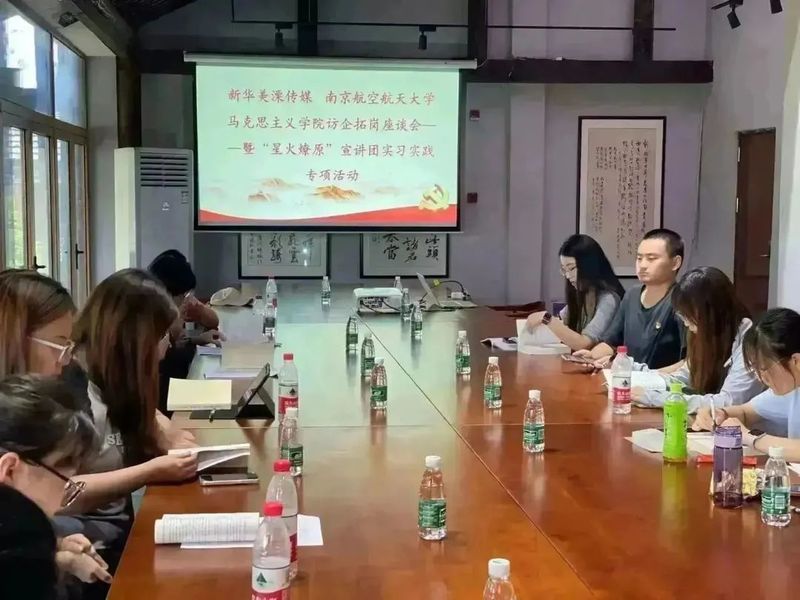 近日,葡京8883官网入口师生赴江苏新华美溧传媒有限公司走访调研。学院党委副书记阙愚带队,教师代表胡媛媛、硕士生辅导员王佳以及宣讲团成员参加调研。李巷教育培训中心主任尹光明、李巷讲解组组长曾庆苗、金陵瞭望杂志社采编部记者编辑黄晓静共同参加座谈交流。