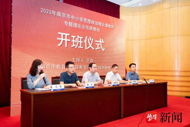 在随后举行的2023年南京市中小学思想政治理论课教师专题理论示范研修班开班仪式上,葡京官网院长王智做培训项目介绍,吴秀亮讲授开班第一课《立德树人,行为世范,做党和人民满意的好老师》。