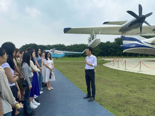 随着众人行进至大型水陆两用飞机AG600静力试验机前,院党委书记徐川为23级新生在户外进行了一堂生动的“开学第一课”。徐川以国家航空航天事业和南航发展的历史渊源为例,激励同学们不怕起点低,不惧基础弱,人生之路在于奋斗拼搏,只有付出努力才能实现质的飞跃。同时,勉励各位新生同学在进行本专业的学习之余,努力了解航空航天知识和发展历程,在学校航空航天底色的浸润下打造出属于自身的特色,作为南航马院学子,植根于红色文化沃土,我们不仅要接好坚持马克思主义信仰、促进马克思主义传播的班,更要运用青年话语,讲好南航故事,传承南航精神,做合格的南航人,做合格的南航马院人。