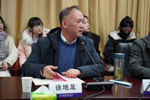马克思主义基本原理教研部主任、副教授徐地龙从课程资源建设、课程教学改革、课程特色与创新、课程展望四个方面对近几年一流课程建设情况做了详细的介绍。在课程资源建设方面,构建了完整的在线开放课程体系,教学资源丰富,线上教学运行良好;在课程教学改革方面,持续推进思政课教学改革创新,以学科建设推进课程建设,线上与线下教学内容、考核内容分层设计,将学生世界观、价值观的引领与培养放在首位;在课程特色与创新方面,课程建设积淀深厚,师资队伍雄厚,线下课堂、线上课堂、实践课堂相辅相成,教学成效高;在课程展望方面,课程队伍要笃行不怠、赓续前行,进一步提高混合式教学融合水平。