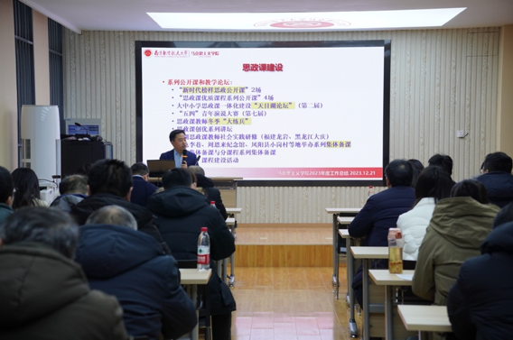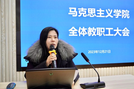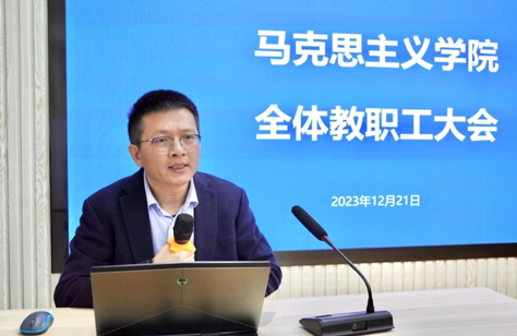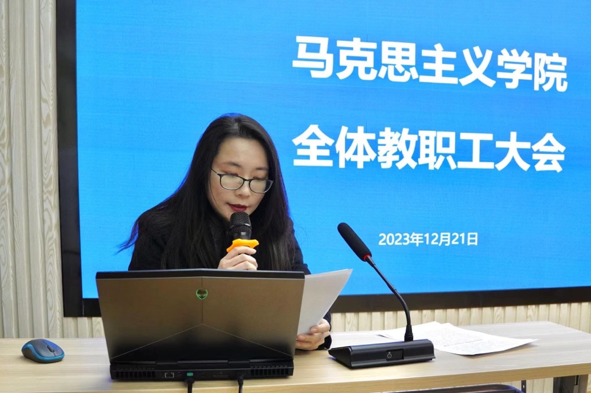 王智代表学院领导班子总结学院2023年度工作,分别从重点落实文件规定、不断健全学院结构与功能、党建引领、思政课建设、学科发展、研究生培养、学生工作、科学研究、学术交流、社会服务、师资建设等方面对学院2023年度工作做出总结。王智指出,这一年学院认真贯彻党中央、教育部和江苏省委关于马院建设的一系列文件,科学谋划学院的建设与发展,健全学院结构与功能;以党建为引领,推进党建与事业发展“一融双高”;牢固树立思政课建设是葡京8883官网入口第一要务的立院导向,积极构建“大思政课”工作体系;学院学科发展、科学研究、学术交流等方面取得长足的进步;研究生培养和学生工作成果丰硕;社会服务取得显著成效;学院师资队伍结构建设更加科学合理。王智通过对2024年工作的展望,希望全体教职工汇聚发展新动能,为建设一级博士点和一流马院而不懈努力。王智向全体教师报告了学院教育、行政和发展经费的使用情况。
