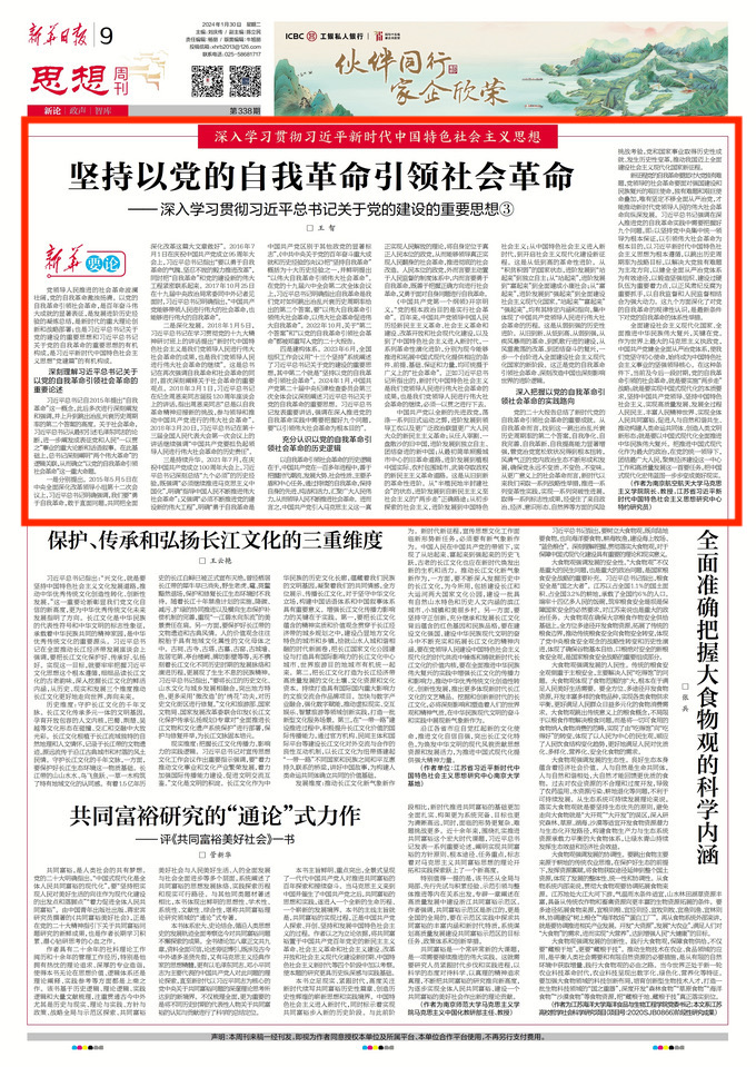 1月30日,《新华日报》第九版思想周刊栏目刊发了葡京官网王智教授的理论文章《坚持以党的自我革命引领社会革命——深入学习贯彻习近平总书记关于党的建设的重要思想③》,现将全文转发如下: