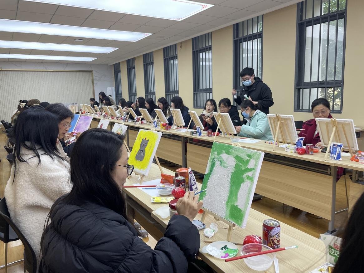 为庆祝第114个国际妇女节,丰富教师业余生活,展现女教师风采,葡京官网于3月8日上午举办了主题为“鲜活春意,趣绘人生”的妇女节肌理画绘画活动。