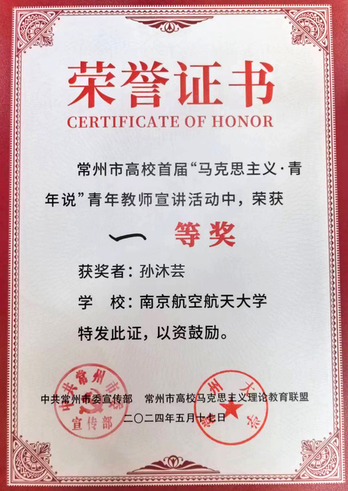 近日,由中共常州市委宣传部、常州市高校马克思主义理论教育联盟主办的“马克思主义·青年说”青年教师理论宣讲活动中,葡京官网教师孙沐芸荣获一等奖。