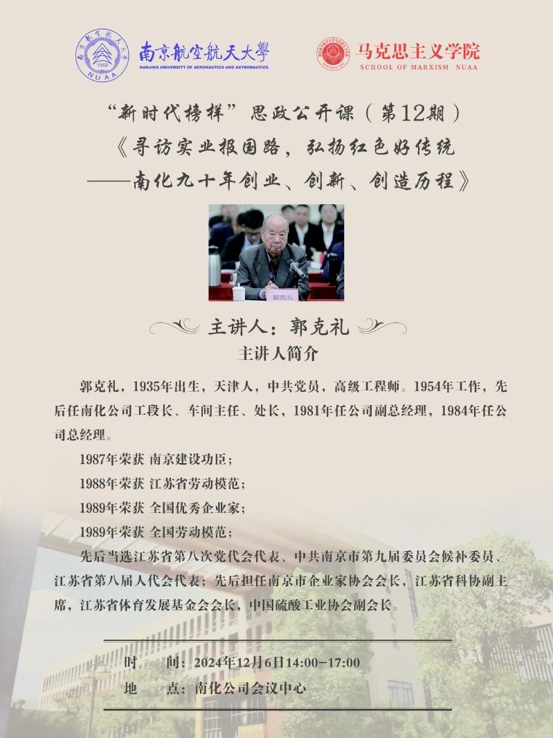 “新时代榜样”思政公开课第12期:寻访实业报国路,弘扬红色好传统——南化九十年创业、创新、创造历程