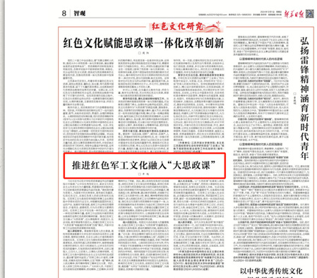2024年12月1日,《新华日报》刊发葡京官网平旭教授文章《推进红色军工文化融入“大思政课”》,该文阐述了红色军工文化融入高校“大思政课”的重要意义、丰富内涵及具体实施路径,为创新思政教育模式提供了新思路。现将全文转发如下: